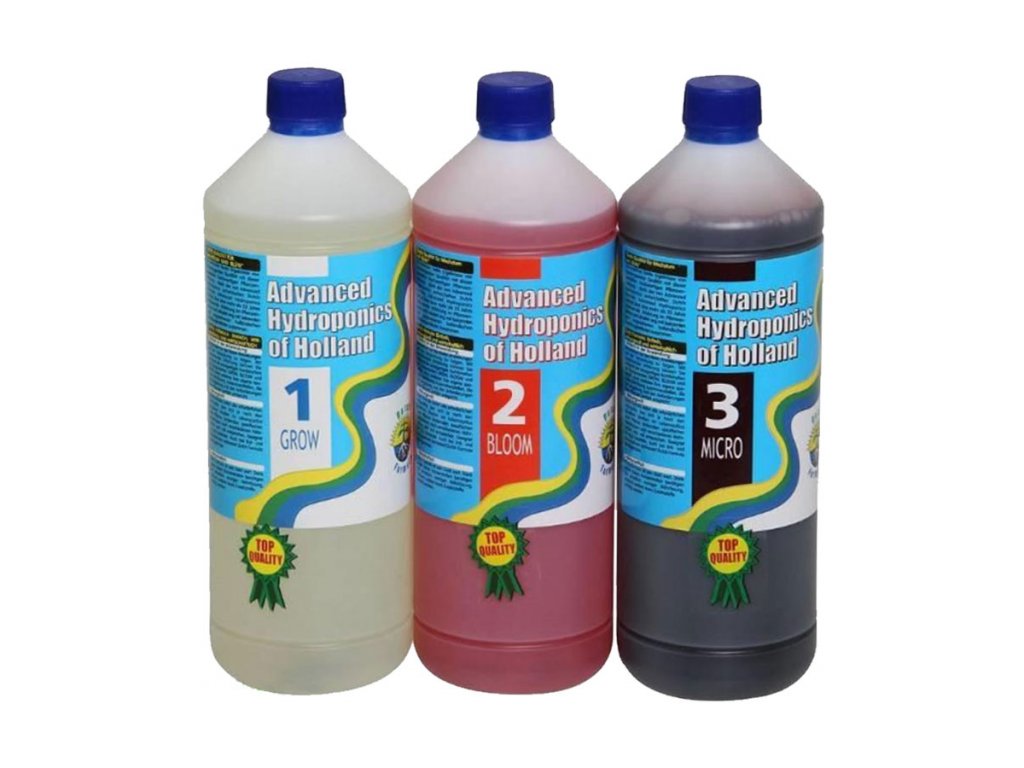 Dutch Formula Advanced Hydroponics obsahuje tři složky (Grow, Bloom a Micro) vhodné pro hnojení rostlin v období růstu, kvetení a pro zajištění živin v každé fázi života rostliny.
