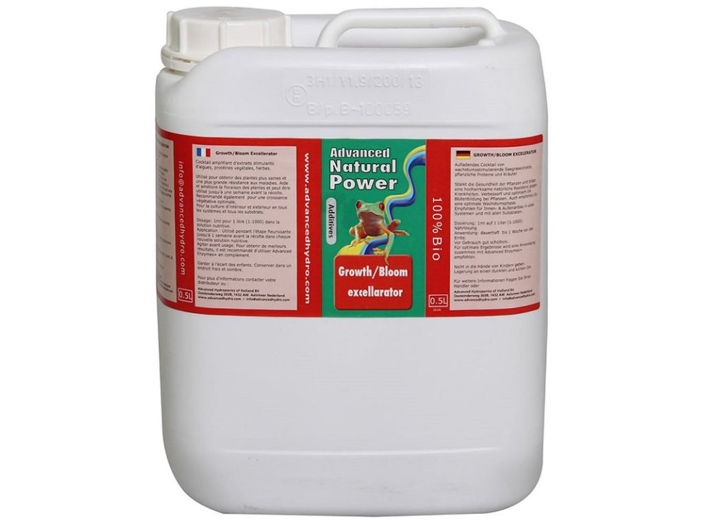 Booster Advanced Hydroponics Growth-Bloom Excellarator je růstový a květový stimulátor, který zajišťuje přirozený a zdravý růst rostlin, podporuje tvorbu hustých květů vysoké kvality a zároveň posiluje imunitní systém rostlin. Je vhodný pro všechny typy pěstebních médií a je možné jej používat po celou dobu životního cyklu rostliny s vyjímkou posledních dvou týdnů, kdy dochází k čištění rostliny od nánosů soli a zbytků odumřelých kořenů. Slouží jako prevence proti nemocem a léčí rostliny napadené hmyzem a škůdci. Pro dosažení optimálních výsledků doporučujeme kombinovat s Advanced Enzymes +.