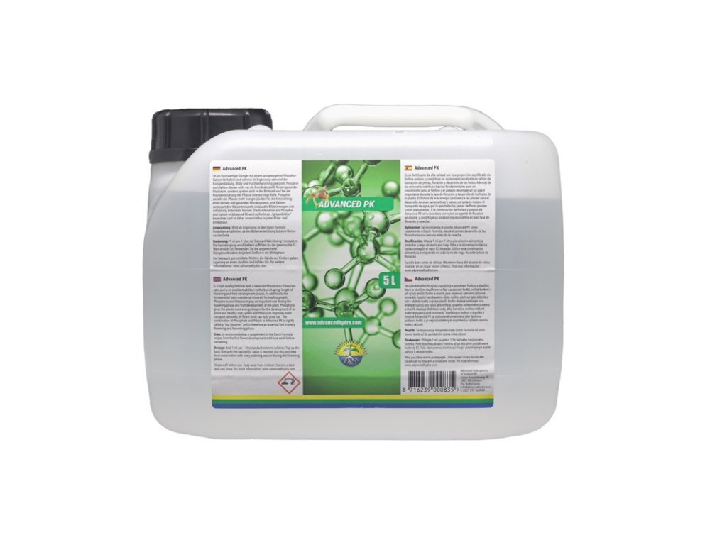 Doplňková výživa Advanced Hydroponics PK obsahuje optimálně vyvážený poměr fosforu a draslíku, který zajistí vynikající tvorbu pupenů a plodů.