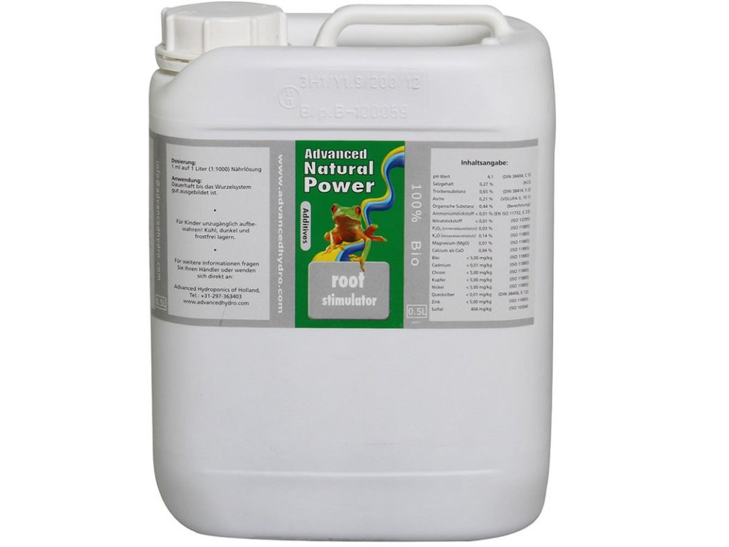 Advanced Hydroponics Root Stimulator je přírodní silový kořenový stimulátor, který podporuje přirozený růst rostlin v prvních týdnech od semenáčků. Je vhodný jak pro semenáčky, tak i pro řízky bez kořenů, kdy se používá od prvního dne do vytvoření dostatečného kořenového základu. Zvyšuje tvorbu tkání přímo v oblasti kořenů nebo v místě, kde se teprve začínají tvořit kořeny. Díky zesilujícímu efektu se kořeny rozvíjejí rychleji a jsou mnohem silnější. Dále také zajišťuje lepší imunitní systém a odolnost vůči nemocem. Při použití tohoto kořenového aktivátoru na začátku semenáčků až do konce vegetačního období se kořeny objeví až o 50% rychleji než bez použití. Je vhodný pro všechny typy pěstování. Doporučujeme použít v kombinaci s Advanced Enzymes+.