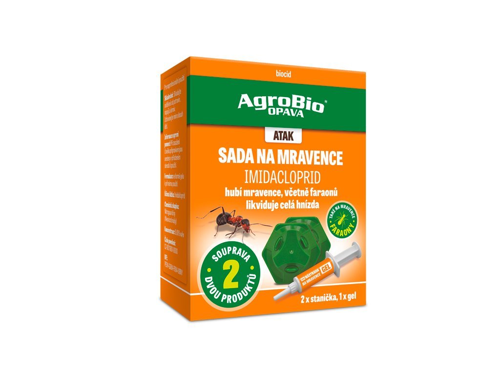 AgroBio ATAK je nástraha na mravence obsahující gel s účinnou látkou Imidacloprid, která hubí mravence včetně mravenců faraonů v interiéru i exteriéru a je bezpečná pro domácí zvířata.