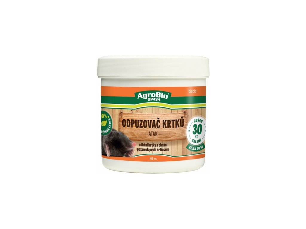 - AgroBio ATAK is a repellent for moles and is used to keep them away from gardens, ornamental lawns, and sports fields.
