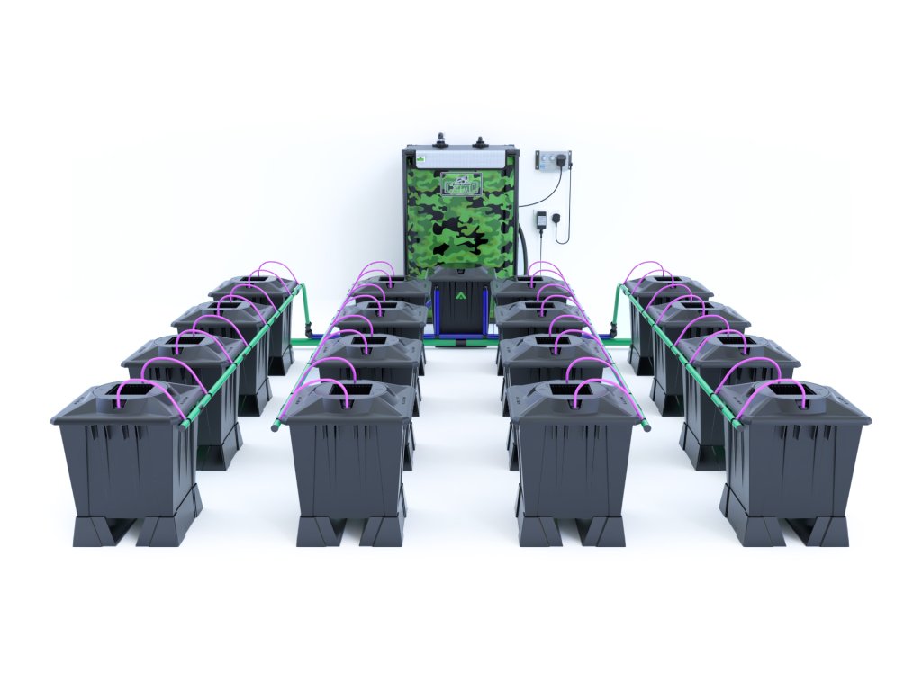 - Živný roztok je dodáván do každé pěstební nádoby pomocí tiché a silné pumpy, což umožňuje pěstiteli větší kontrolu nad podmínkami kolem kořenů rostliny.