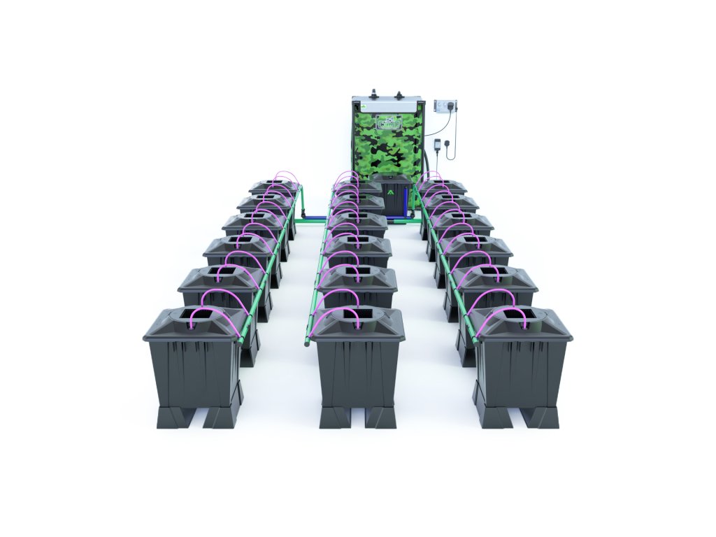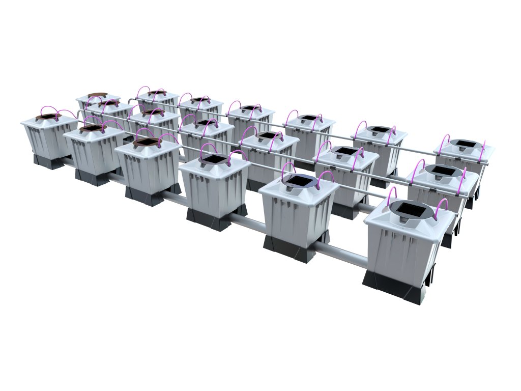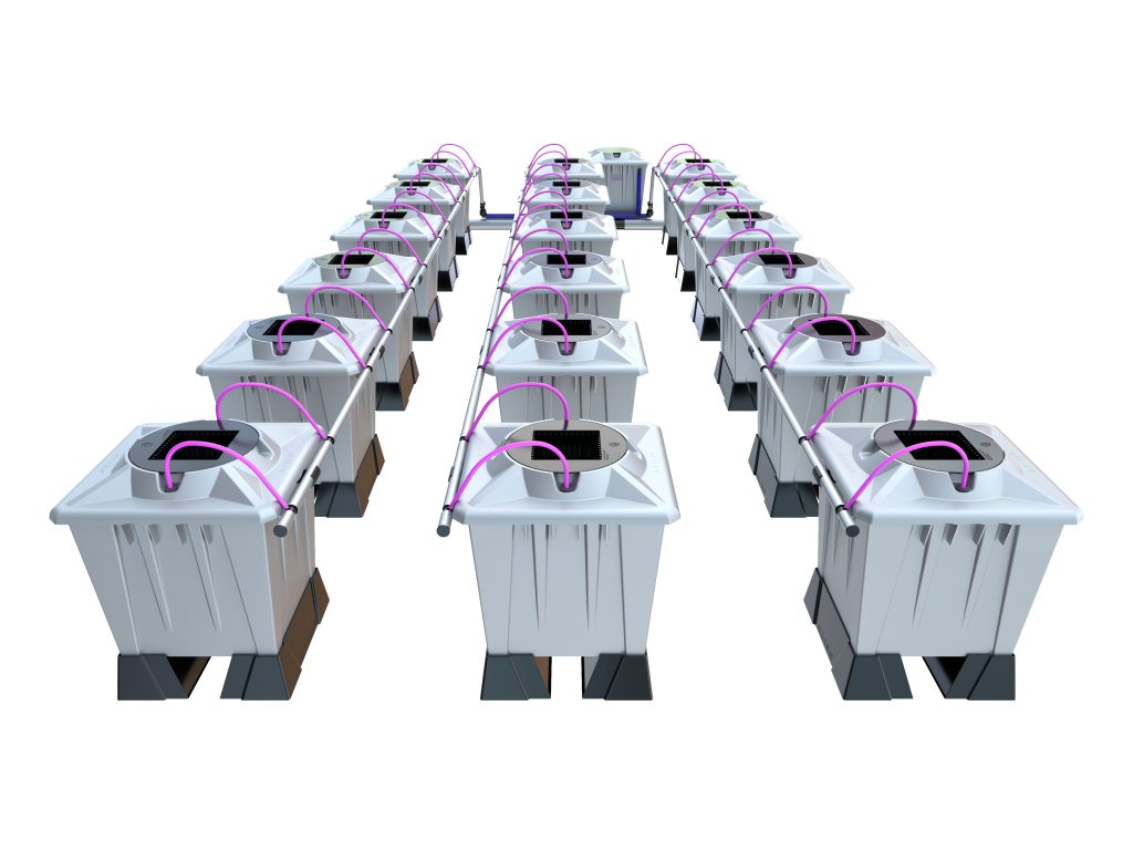 - Systém je dostupný jako RTW (run-to-waste) nebo recirkulační, oba způsoby jsou velmi úsporné z hlediska spotřeby vody a hnojiv.