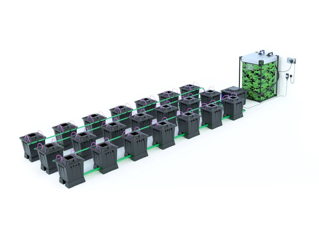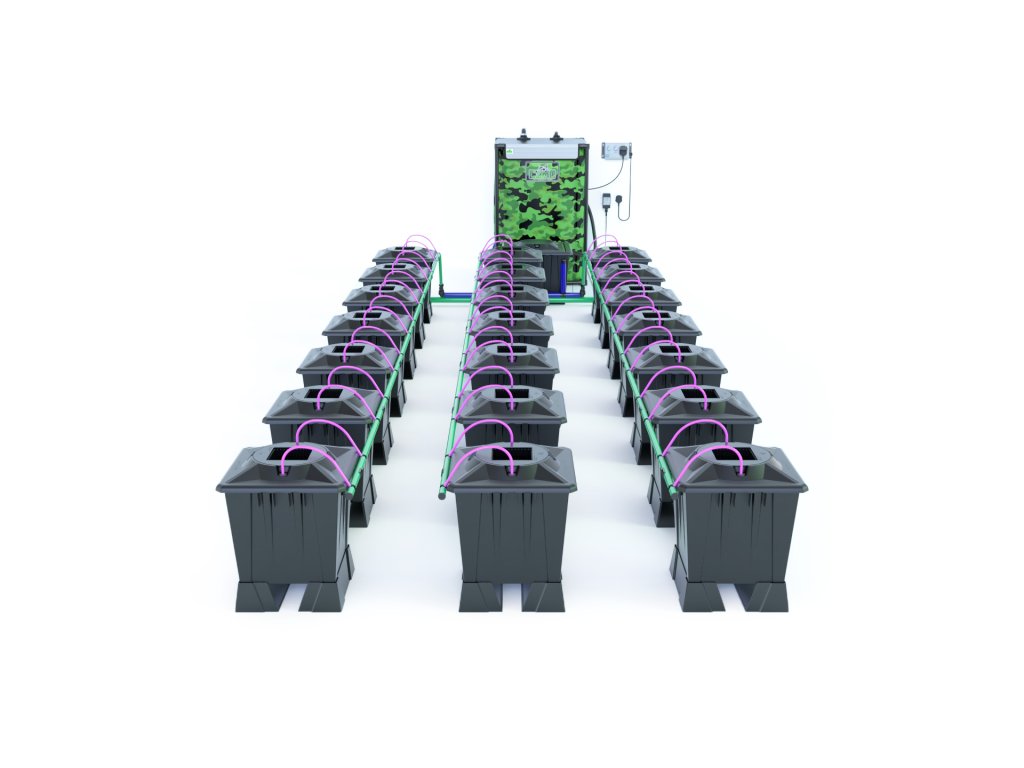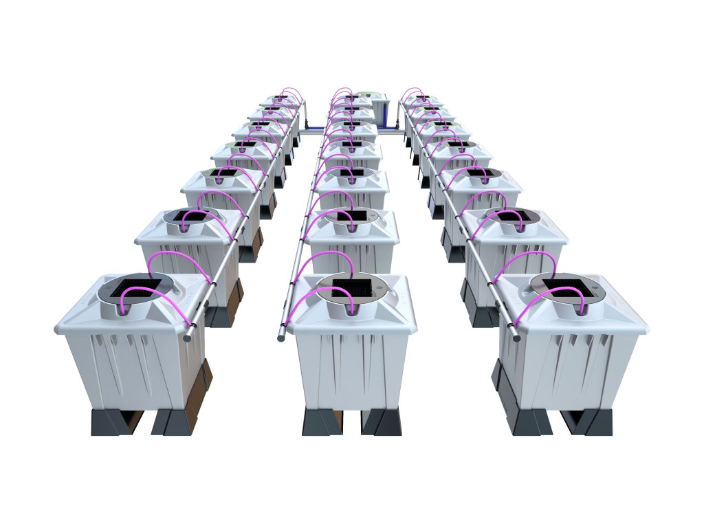 Systém Alien Hydroponics Aero umožňuje pěstování rostlin bez pěstebního média v otevřeném košíčku s využitím živného roztoku, který je dodáván pomocí tiché pumpy a ovládán systémem Rain Brain.