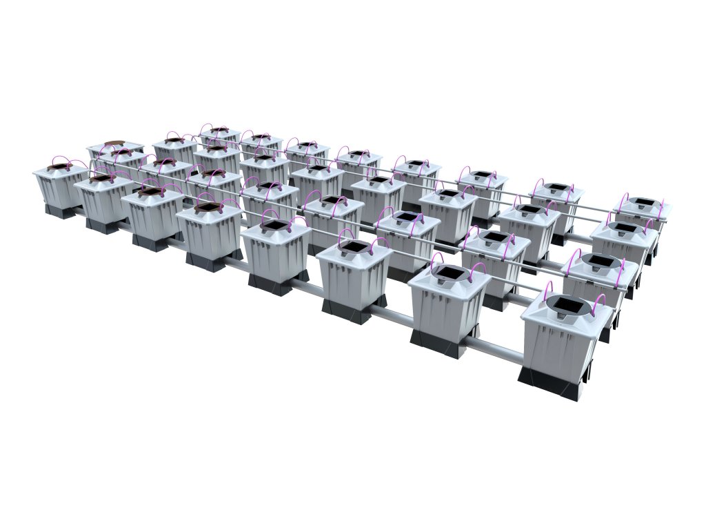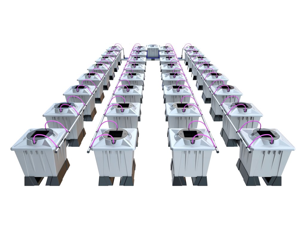 - Systém lze postavit jako run-to-waste nebo recirkulační systém, oba s efektivní spotřebou vody a hnojiv