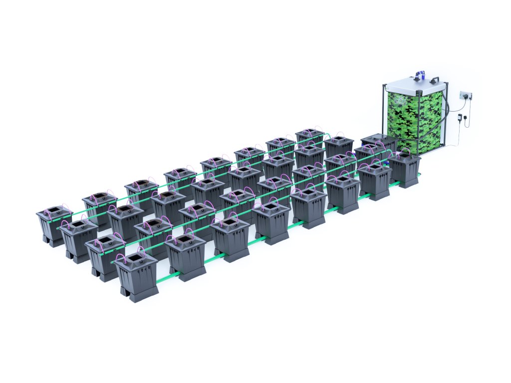 - Každé balení obsahuje nádoby, víka, hydroponické košíčky, mikropostřikovače, podstavce k nádobám, filtrační hlavici, řídicí systém Rain Brain, závlahové čerpadlo Rain, vypouštěcí čerpadlo, svorky na nádoby, svorky na víka, matice, podložky, ventilové kohouty, sifonové ventily, potřebné hadice, nůžky na hadice, francouzský klíč, hadicové spony a manuál
