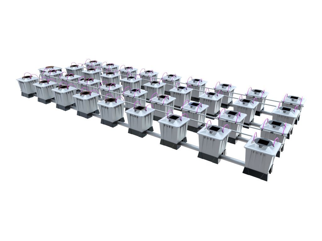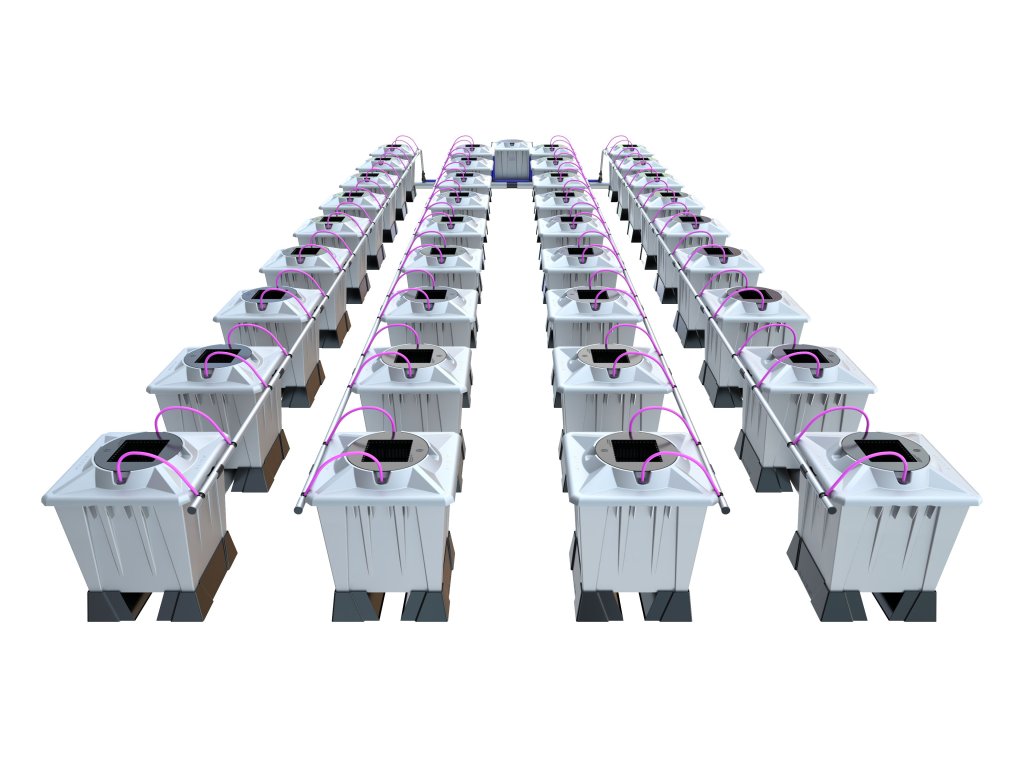- Systém je možné postavit jako RTW (run-to-waste, použitá zálivka je odváděna do odpadu) nebo recirkulační systém