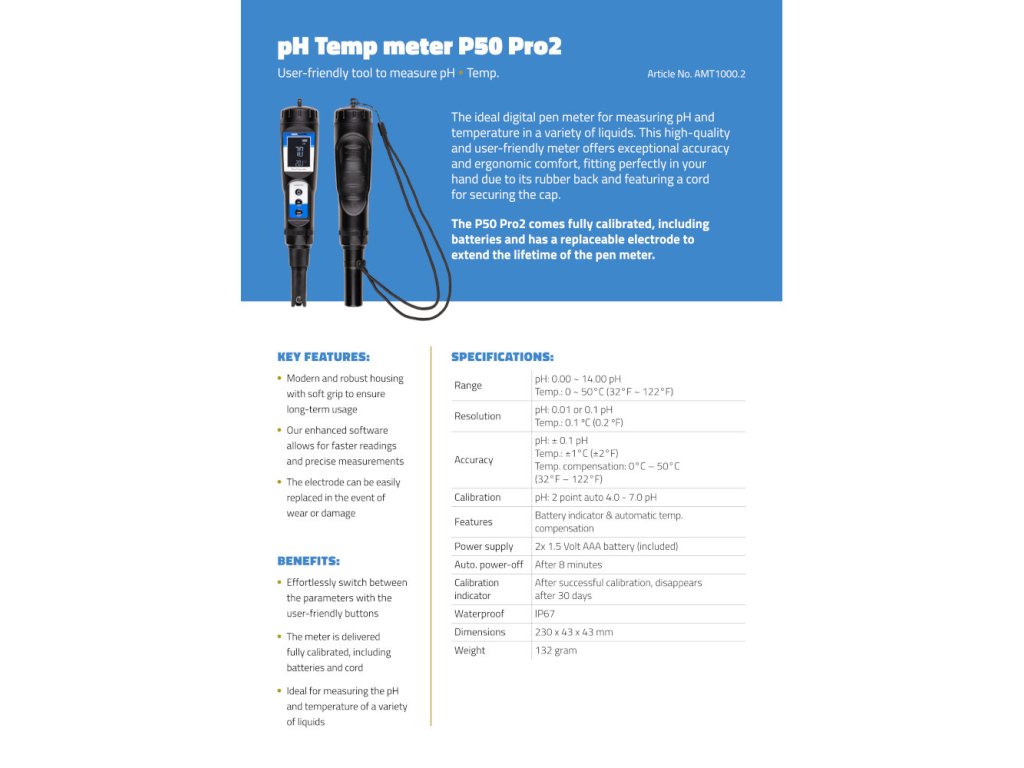 - 1 x digitální pH metr P50 Pro 2.0
