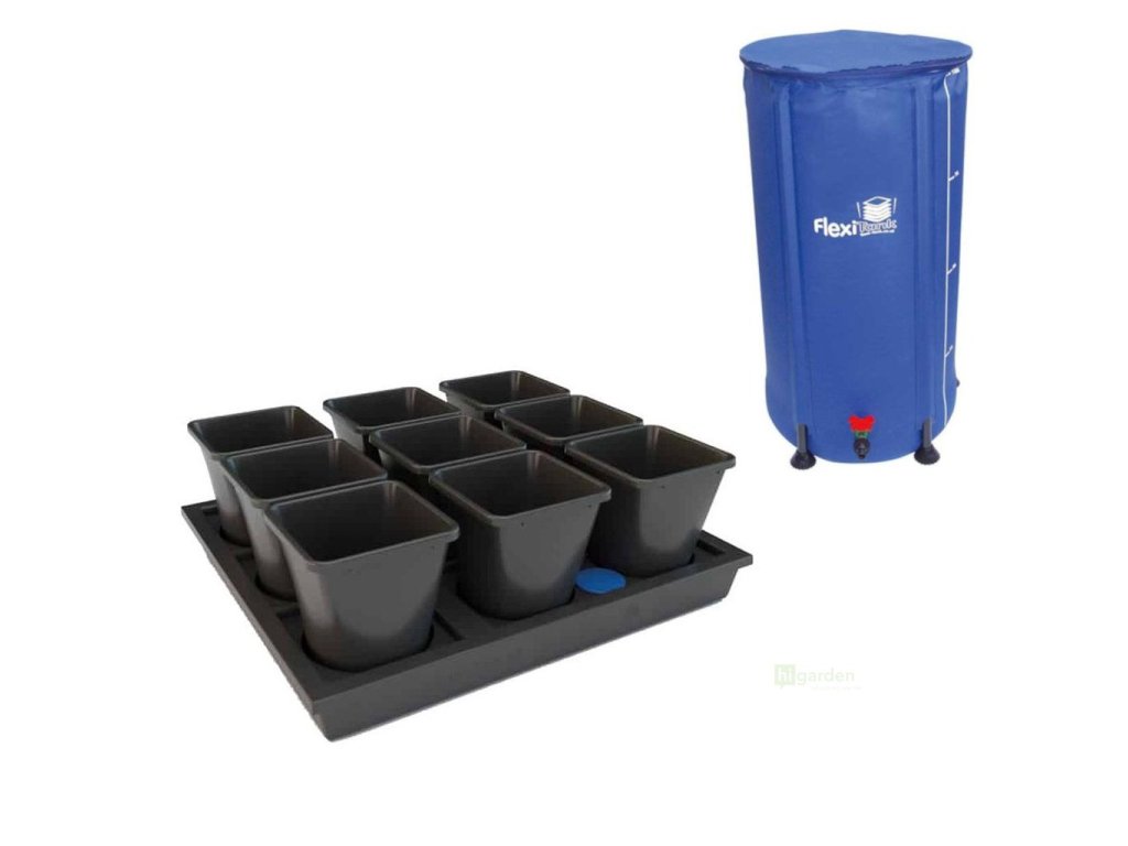 - Obsahuje Auto9 XL nádrž, vrchní kryt, balíček, Flexitank 100L, Květníky 25L černé, a 16-9mm filtr s rychlospojkou