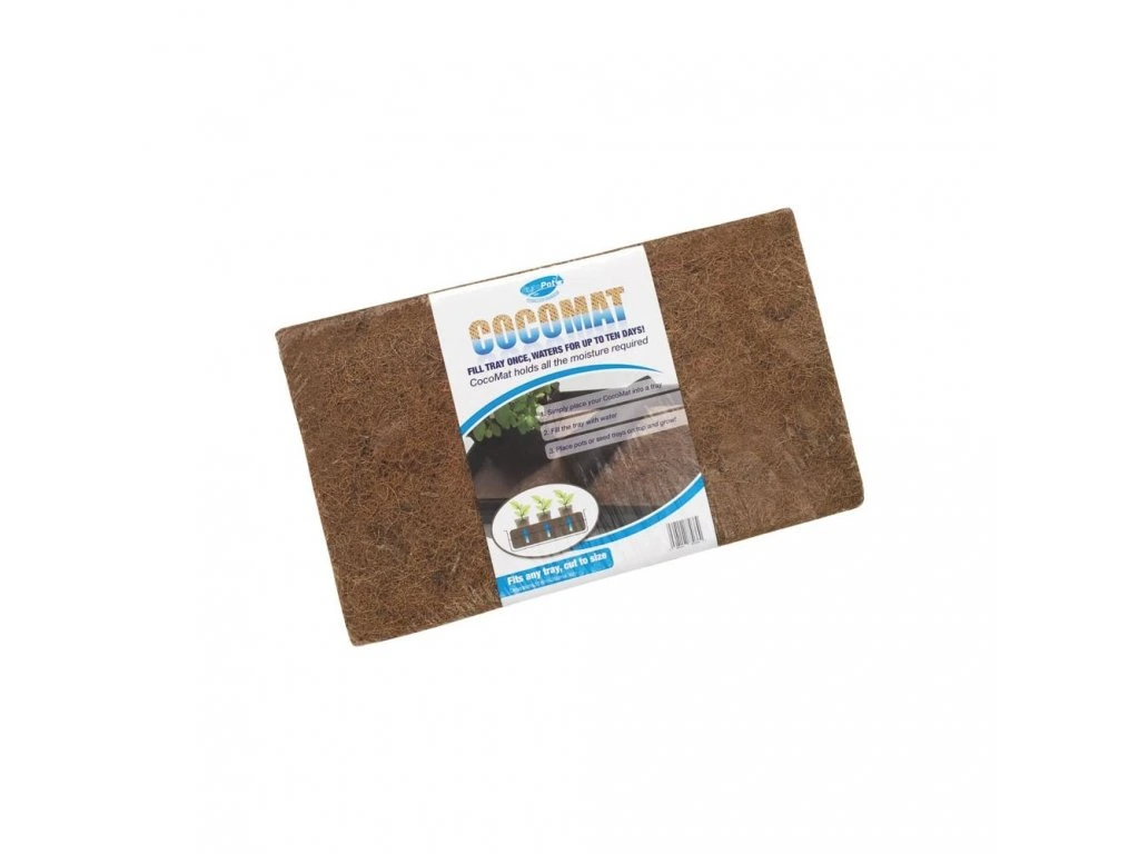 Podložka CocoMat je vyrobena z kokosových vláken a latexu s fólií Root Control Sheet, zadržuje vlhkost a umožňuje zavlažování rostlin až deset dní.