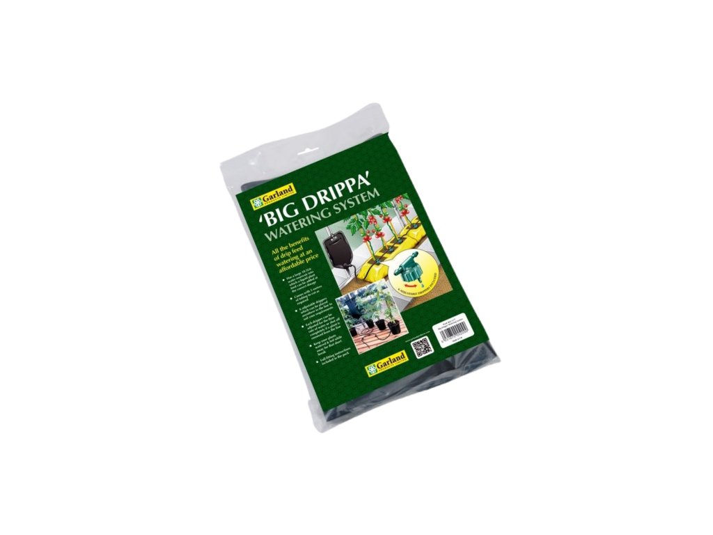 Samostatný gravitační zavlažovací systém Garland s 10,5litrovým vakem se zásobníkem vody, 5 metry zavlažovací trubice a 6 nastavitelnými kapači je ideální pro použití v oblastech bez vodovodní sítě.