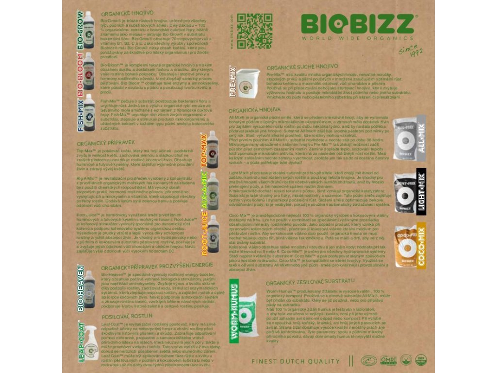 - Produkty BioBizz obsahují především přírodní organické prvky.