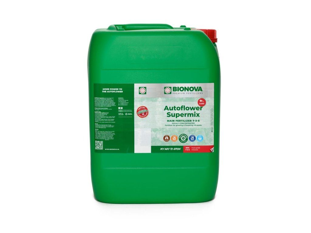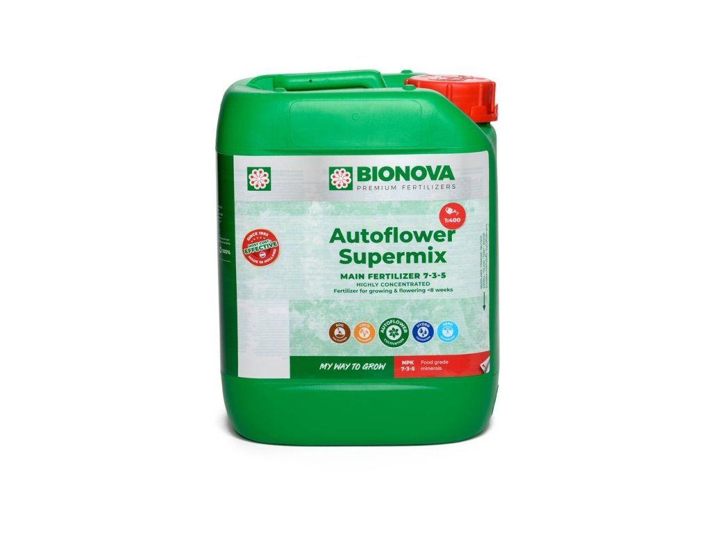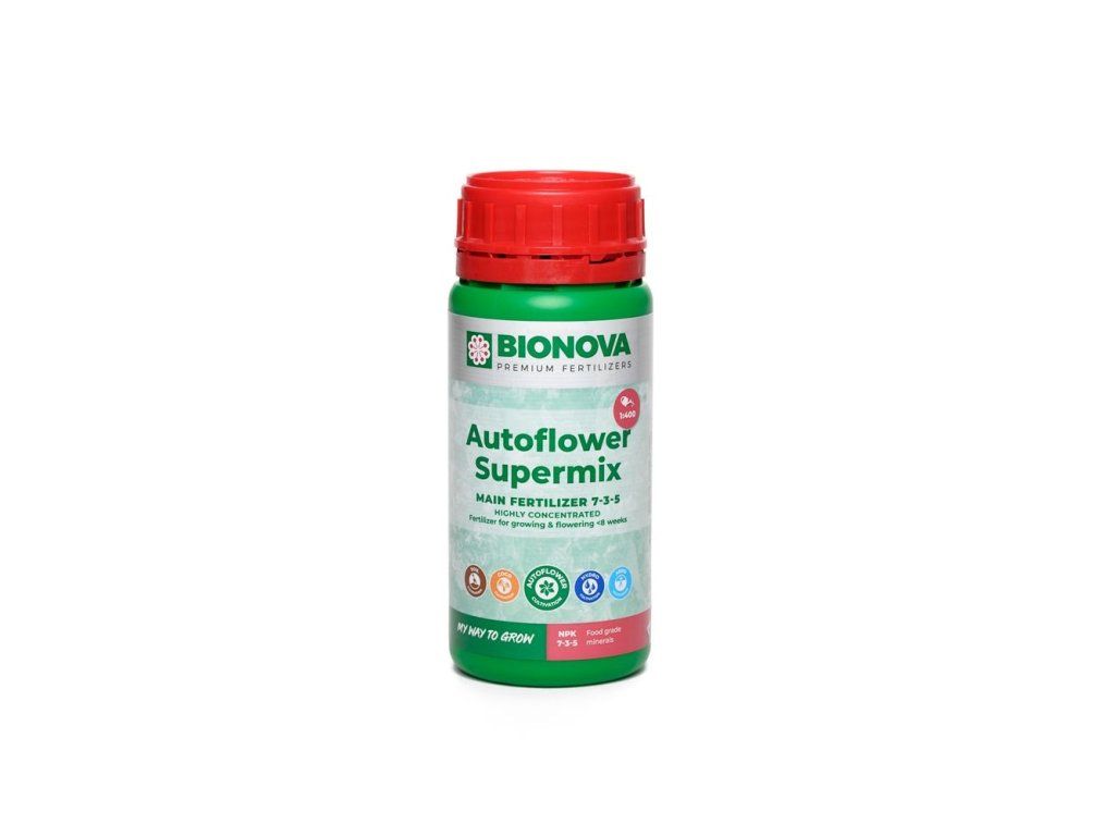 - BioNova AutoFlower SuperMix je jednosložkový doplněk speciálně vyvinutý pro autofloweringové rostliny