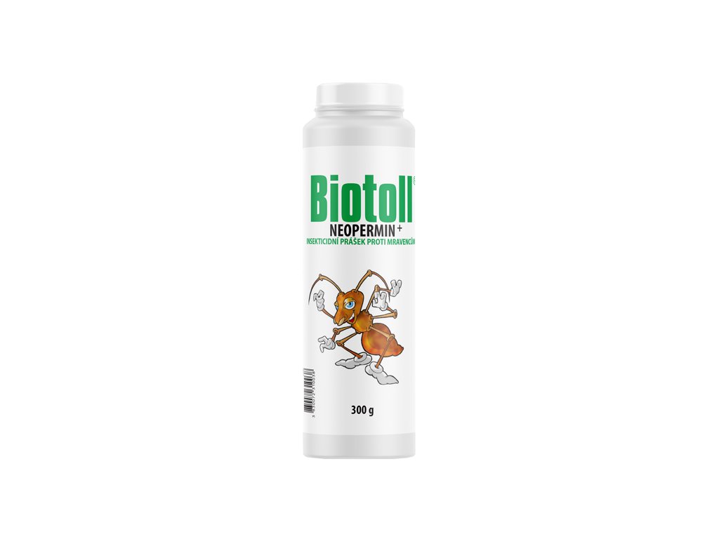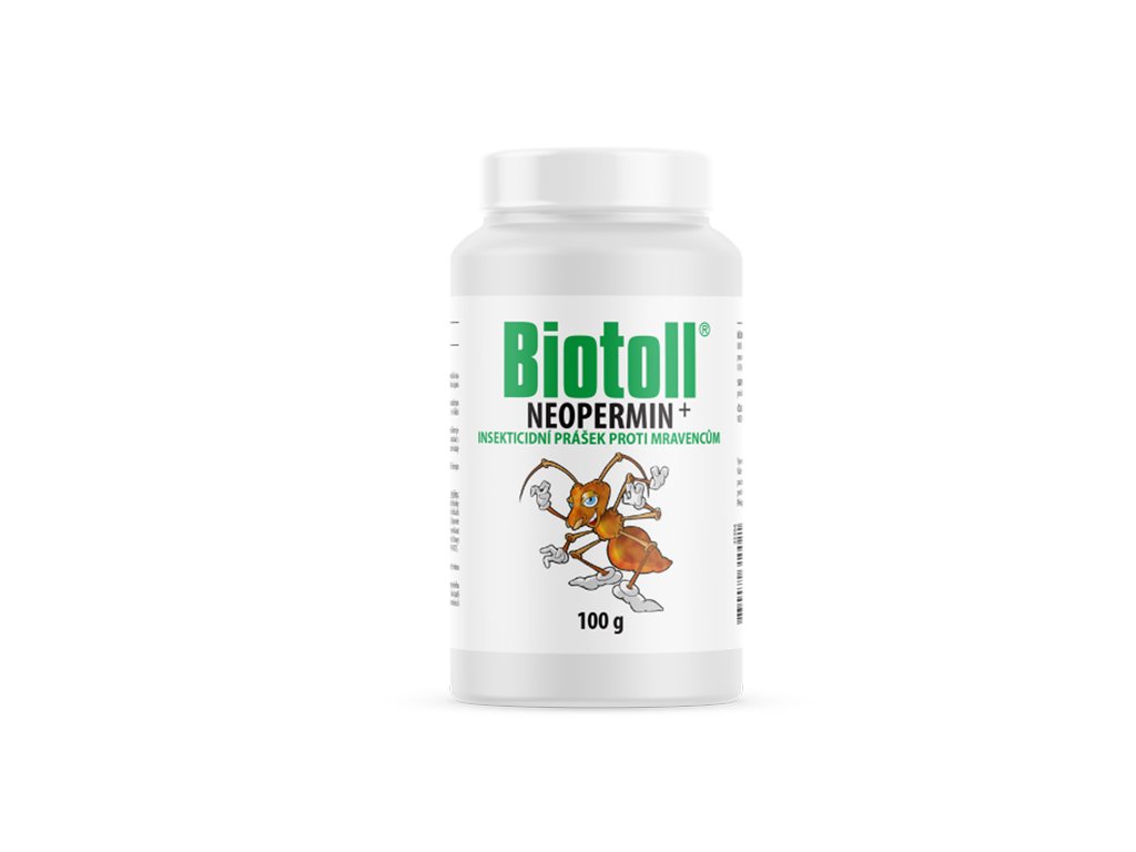 Biotoll - Neopermin je bezvůný a bezbarvý přípravek na hubení mravenců, který se aplikuje dotykově posypem na chodníky, pergoly, kolem domů a jiná místa.