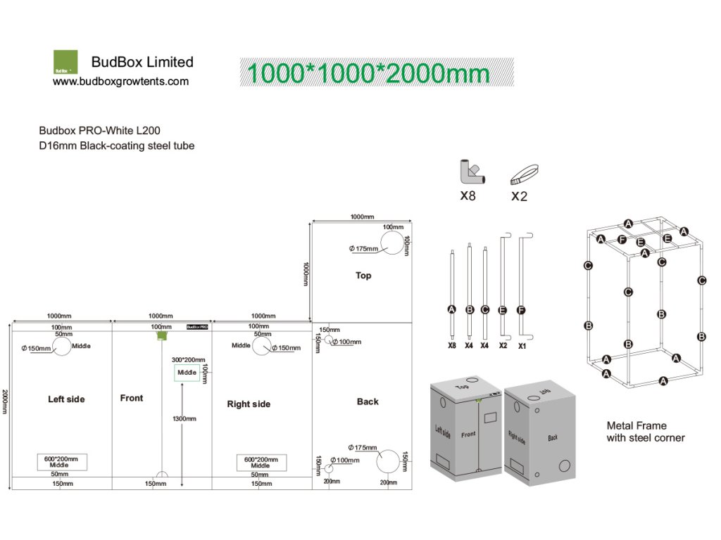BudBox Pro L200 je vysoce kvalitní pěstební stan pro profesionální pěstování i domácí pěstitele, vyrobený z neprůsvitného materiálu s ocelovou konstrukcí a unikátním pozorovacím okénkem.