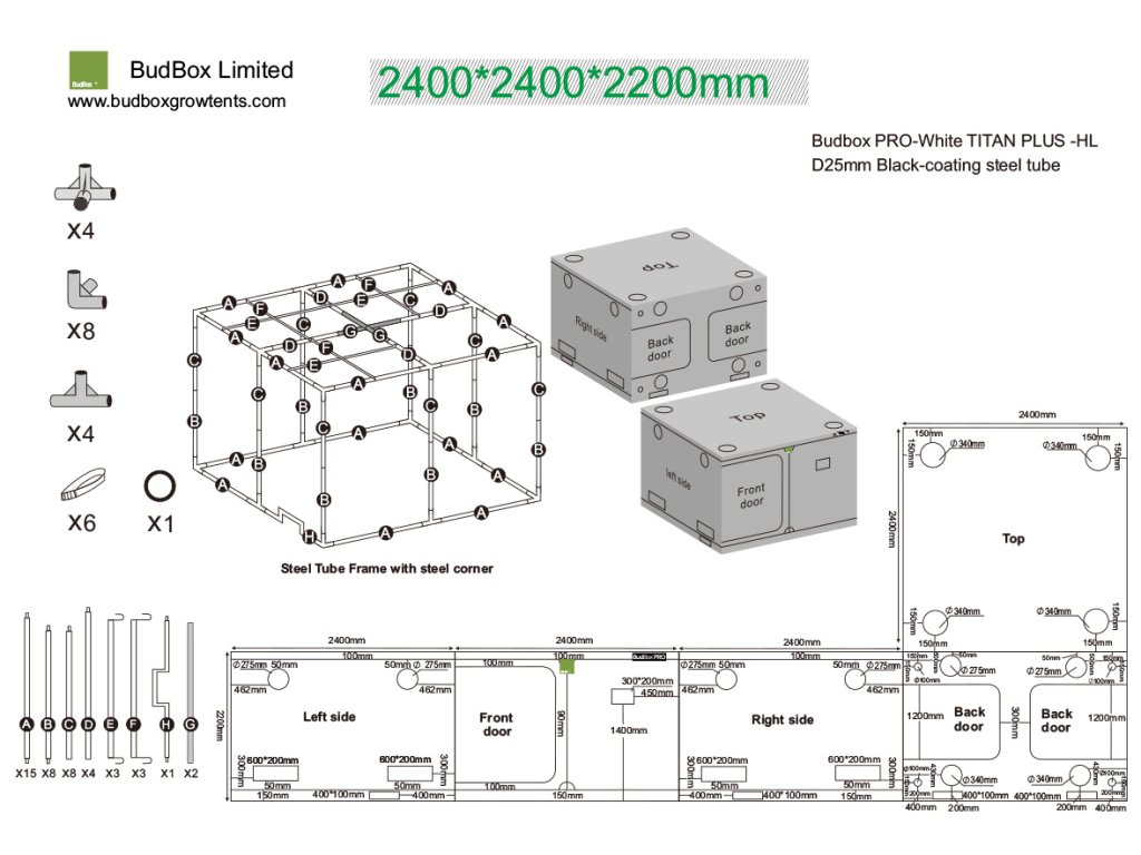 BudBox PRO Titan+ HL 240 je vysoce kvalitní a profesionální pěstební stan s nadstandardní výškou, vhodný pro pěstování v samozavlažovacích systémech a osvětlení HPS a LED.