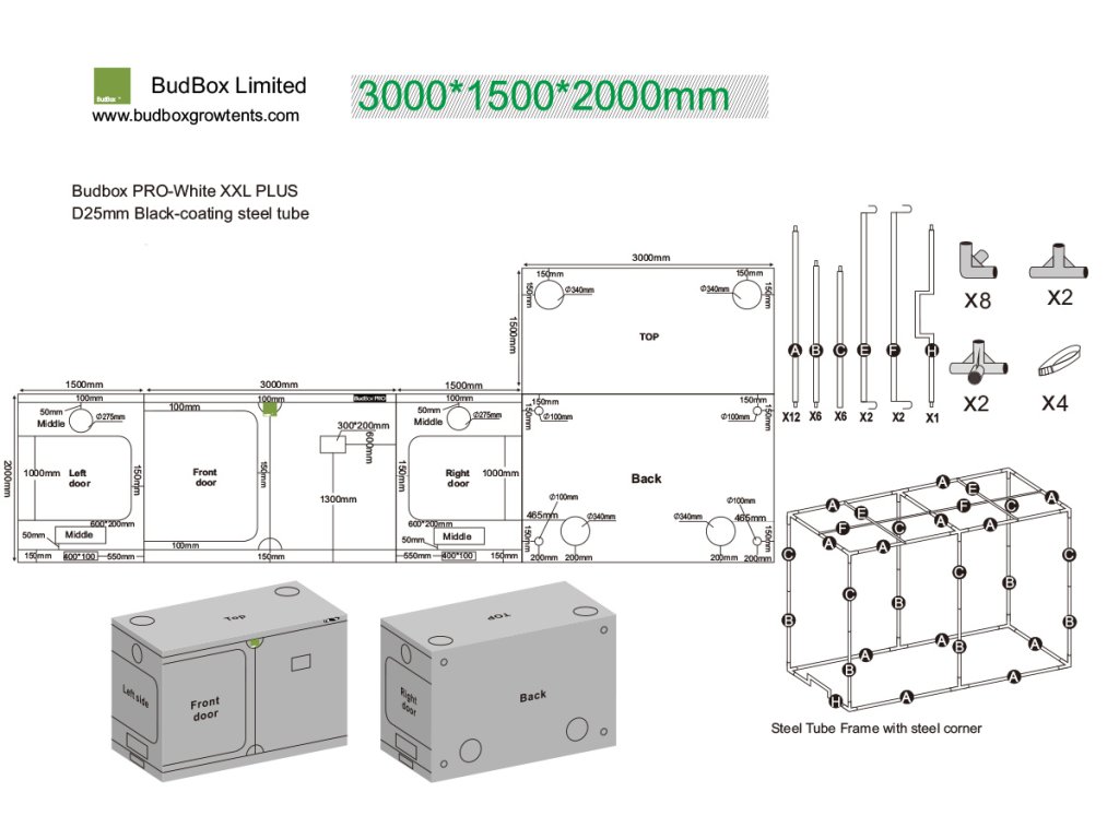 BudBox PRO XXL+ 150 je vysoce kvalitní pěstební stan s unikátním pozorovacím okénkem, vyrobený z neprůsvitného materiálu a kovové konstrukce s kvalitní povrchovou úpravou.
