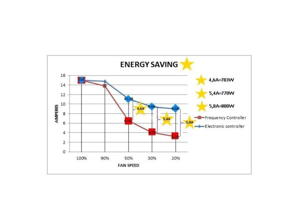Regulátor frekvence je digitální regulátor s plynulou regulací teploty, samostatný, typu Plug and Play. Je vybaven teplotním čidlem. Obsahuje vestavěný regulátor frekvence, který řídí rychlost elektromotoru, a využívá pokročilý systém eliminující hluk a vibrace bez ohledu na nastavenou rychlost.