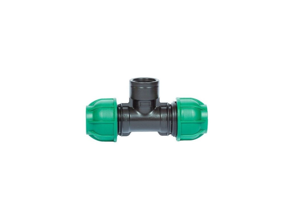 20x3/4"x20 mm - Mechanická tvarovka pro spojování potrubí z nízkohustotního polyethylenu PE-LD a středněhustotního polyethylenu PE-MD, vnitřní závit na odbočce, zelená