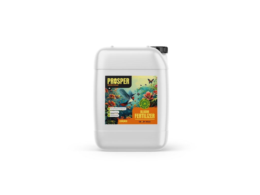 Crazy Hills PROSPER je květové hnojivo s ideální směsí živin pro produkci pupenů, květů, plodů a semen, která zvyšuje množství fosforu a draslíku pro silný růst rostlin a šíleně dobré vůně.