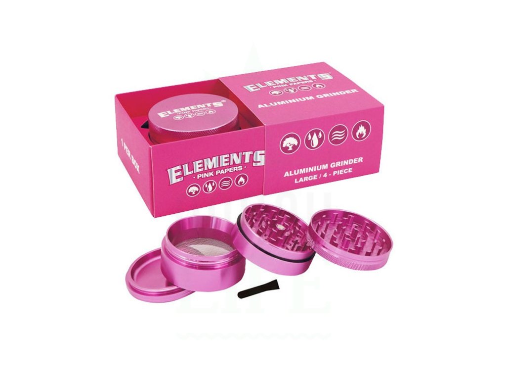 Velká čtyřdílná kovová drtička s magnetickým středem, vyrobená z kvalitního hliníku, disponující sítkem.