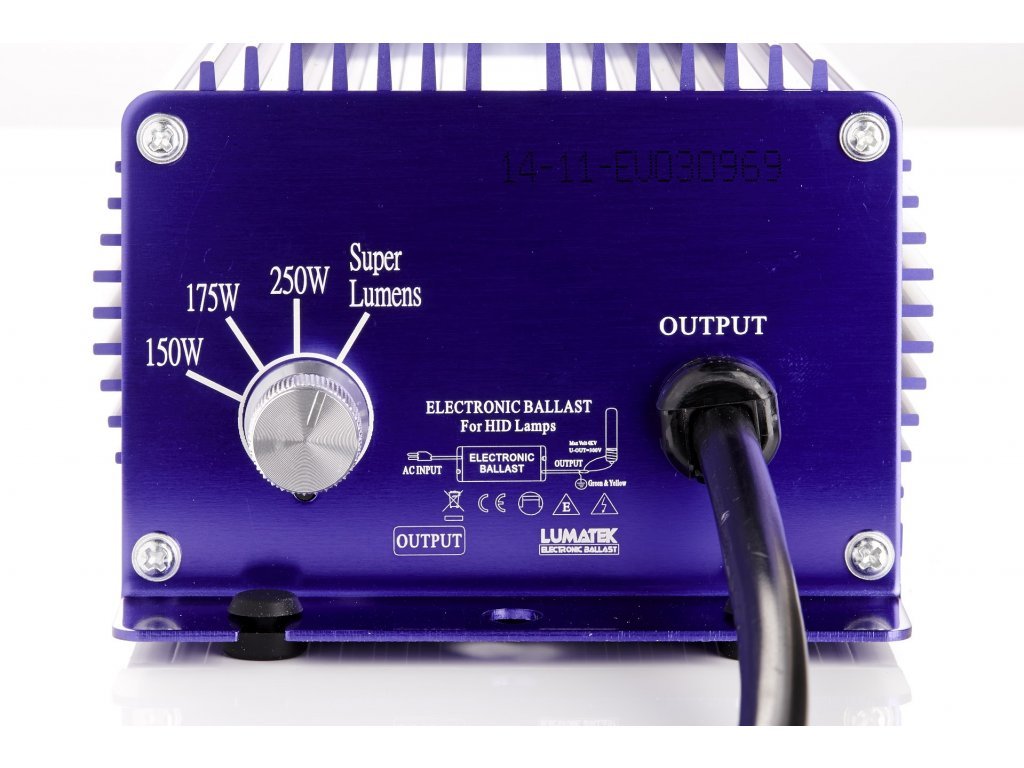Lumatek 250W elektronický předřadník je výkonný a tiše fungující, s nižší spotřebou energie a delší životností výbojek, umožňuje rychlý start a plné světlo dosáhne během jedné minuty.