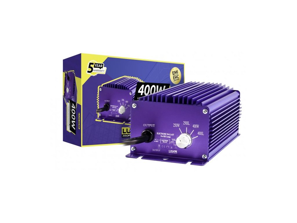Elektronický předřadník Lumatek 2. generace s čtyřpolohovou regulací světelného výkonu umožňuje snadnou instalaci a obsluhu s možností nastavení výkonu od 250W do 400W.