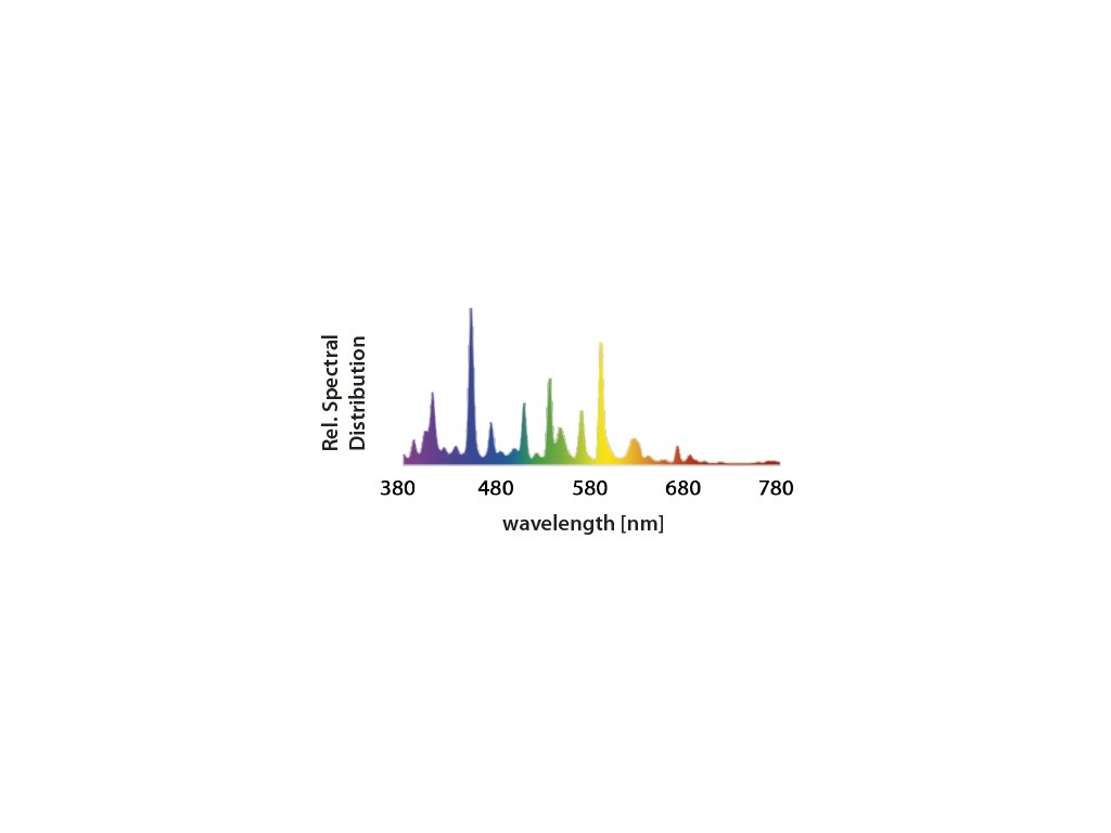 - Vyzařuje modrobílé světlo, vhodné pro růstovou fázi rostlin.