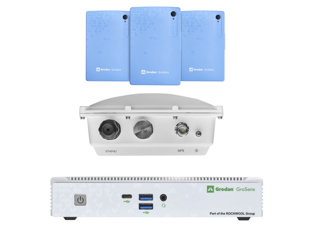 Grodan GroSens 2.2 Vegetable Starter Kit obsahuje 3x GroSens 2.2 Rootzone sensors, 1x Bridge, 1x Gateway.
