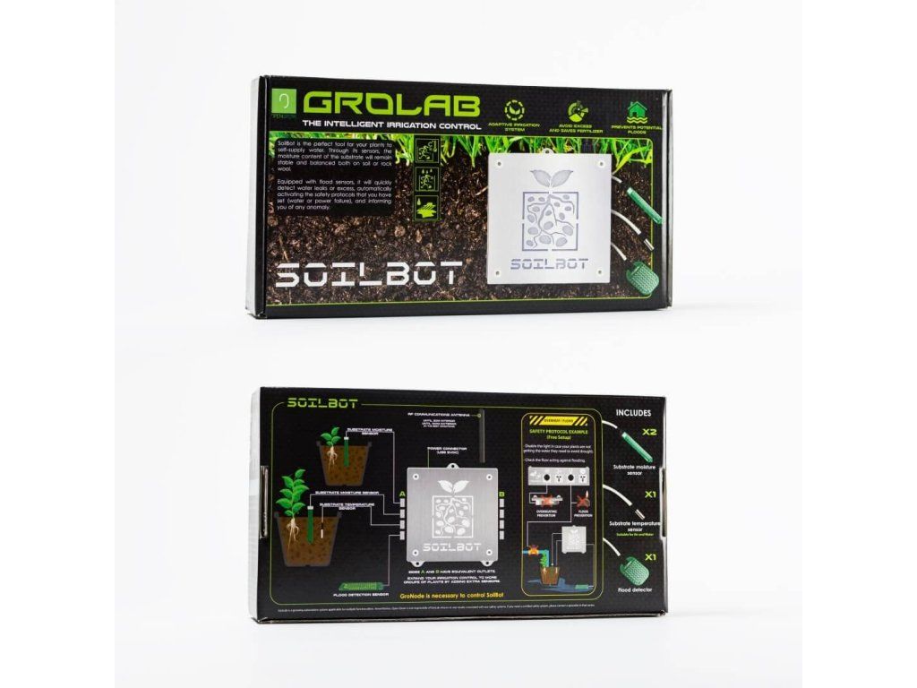 GroLab SoilBot umožňuje plnou automatizaci zavlažování a udržení vlhkosti a teploty substrátu s možností připojení až 4 různých skupin rostlin současně.