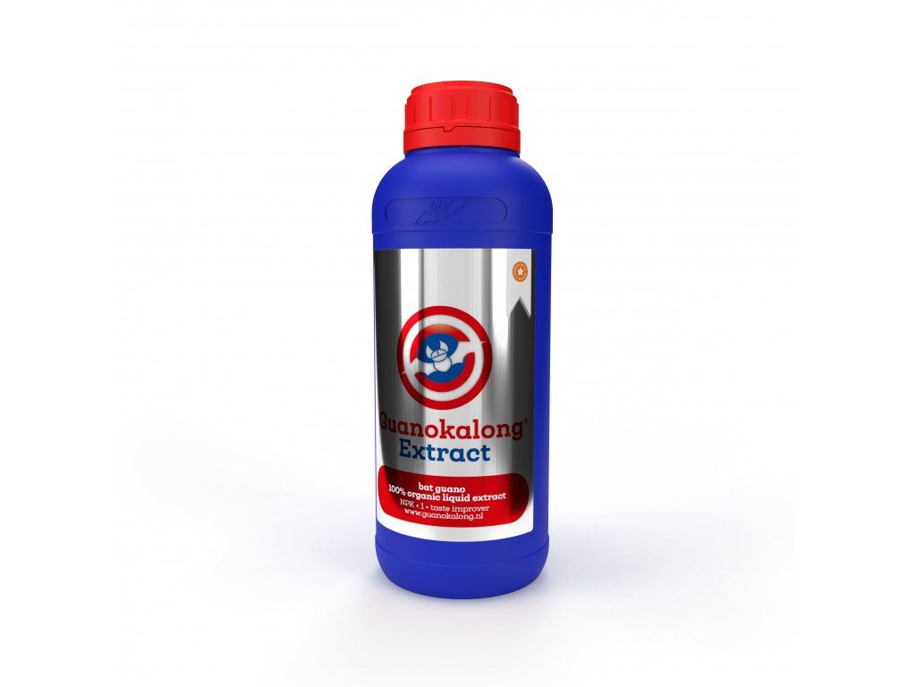 Hnojivo Guanokalong Extrakt je kapalné a zcela biologické hnojivo, které je vhodné pro růstovou i květovou fázi rostliny. Používá se do všech typů půd a půdních substrátů, do hydroponií, kokosových substrátů a pro venkovní pěstitele. Lze jej velice efektivně používat společně s hnojivy Guanokalong sypké a s Guanokalong peletami. Guanokalong Extrakt lze také přidávat jako doplněk k jiným typům NPK hnojiv. Guanokalong je čistě přírodní produkt, který se získává z netopýřích exkrementů pomocí procesu sušení. S ohledem na pěstitele v hydroponických systémech se Guanokalong extrahuje do tekuté formy. Složení hnojiva Guanokalong Extrakt je následující N-P-K 2-0,5-2. Dále je hnojivo bohaté na vápník a hořčík a samozřejmě obsahuje kompletní škálu nezbytných stopových prvků. Urychluje tvorbu kořenového systému. Obohacuje rostlinu v období květu. Zvyšuje odolnost rostliny proti bakteriím.