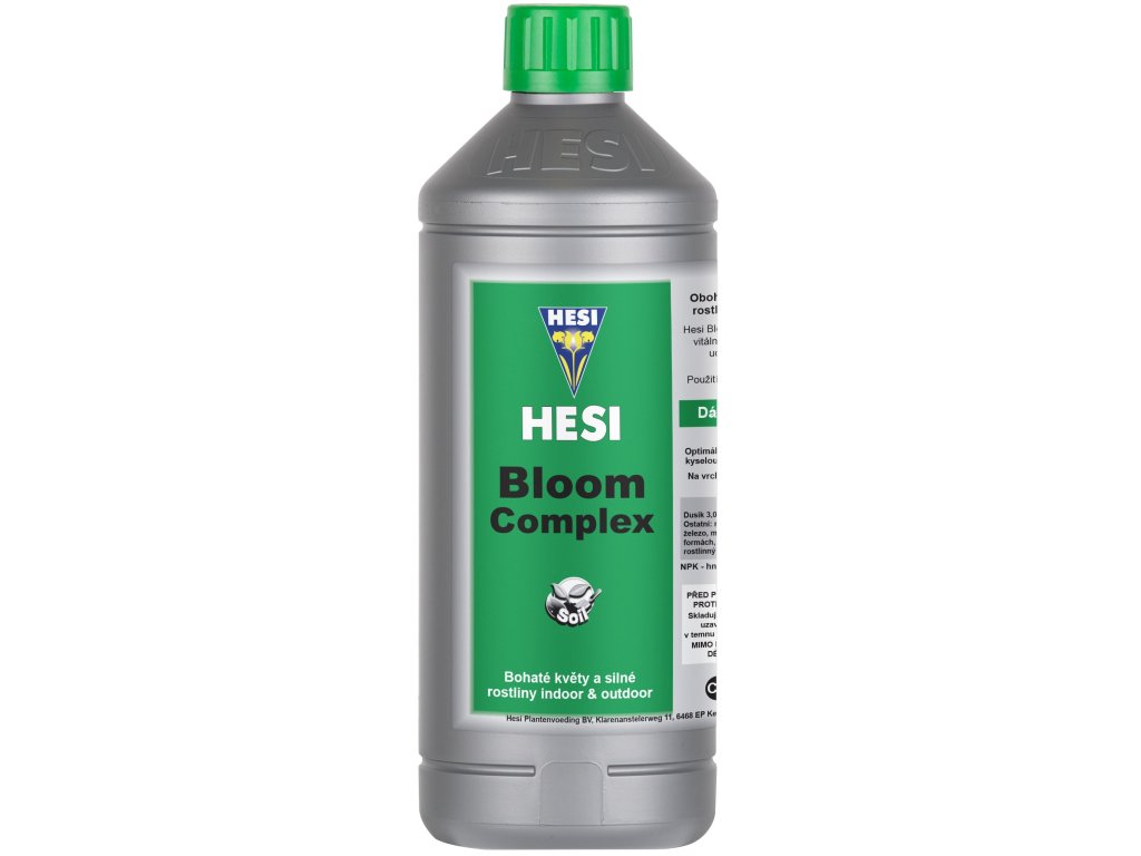 Hesi Bloom Complex je univerzální půdní hnojivo, které se využívá při květové fázi. Hnojivo je určeno jak pěstitelům indoor rostlin, tak i pěstitelům do skleníků a na zahrádky. Hnojivo splňuje standardy EU a je vyrobeno pouze z kvalitních přírodních látek. Poměr základních živin je následující N-P-K 4-3-5. Dále je hnojivo obohaceno o vitamíny, aminokyseliny, jednoduché cukry a stopové prvky (železo, hořčík, zinek, měď, bór, molybden, jód a kobalt). Hnojivo podporuje růst a tvorbu květů, dodává rostlině potřebnou energii a zároveň napomáhá půdní mikroflóře.