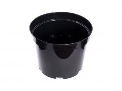 - Kulatý plastový květináč s objemem 4 l. Barva černá, tvrdý plast.