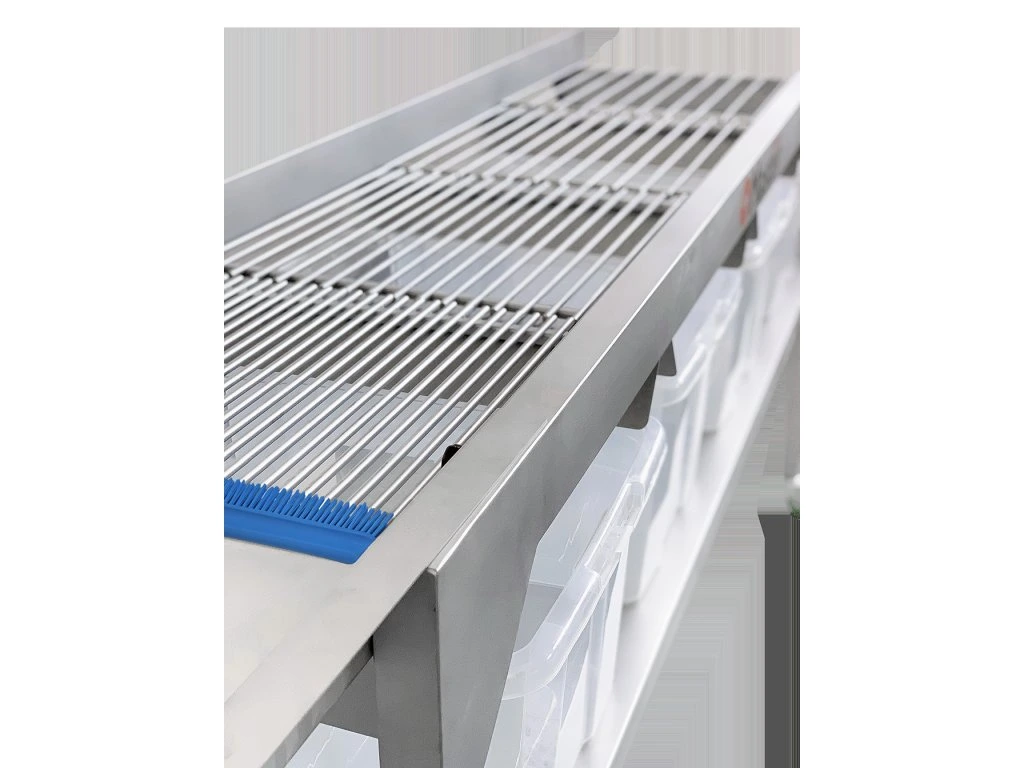 Třídí květy konopí podle velikosti. Díky více než 2 metrům čtverečním třídicí plochy, 9 třídicím pásům a možnosti třídit na více než 7 velikostí je Master Sorter 500 nejuniverzálnějším strojem v oboru.