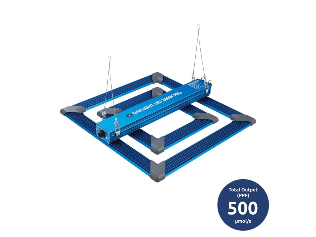 DAYLIGHT 200W PRO LED je dokonalým řešením pro pěstování v malém měřítku. S vynikajícím celkovým výkonem 500 μmol/s. Tato kompaktní jednotka dokonale pokryje plochu o rozměrech 80x80 cm nádherným světlem v plném spektru (včetně Far-Red).