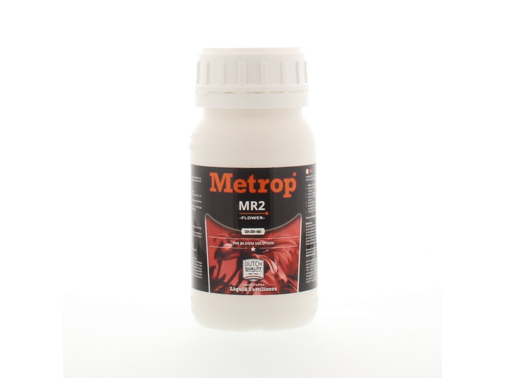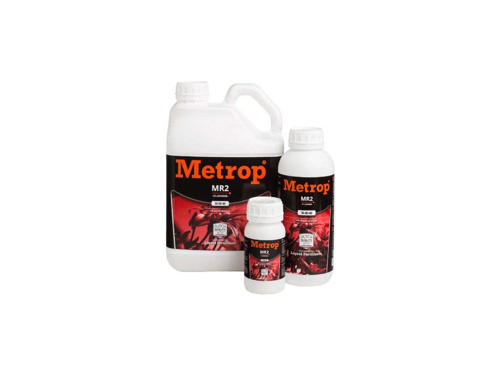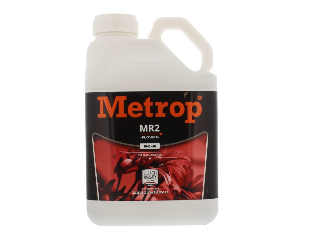 Základní hnojivo Metrop MR2 pro fázi květu, obsahuje veškeré mikro a makro prvky, potřebné pro zdravý vývoj rostlin. Vyšší obsah fosforu pro bujné kvetení. Kvalita vstupních prvků a použití chelatačního činidla EDTA umožňuje rostlině rychle vstřebávat látky obsažené v hnojivu. Díky těmto vlastnostem je při shodné hodnotě EC s běžnými hnojivy možné dodat rostlině znatelně více výživy.