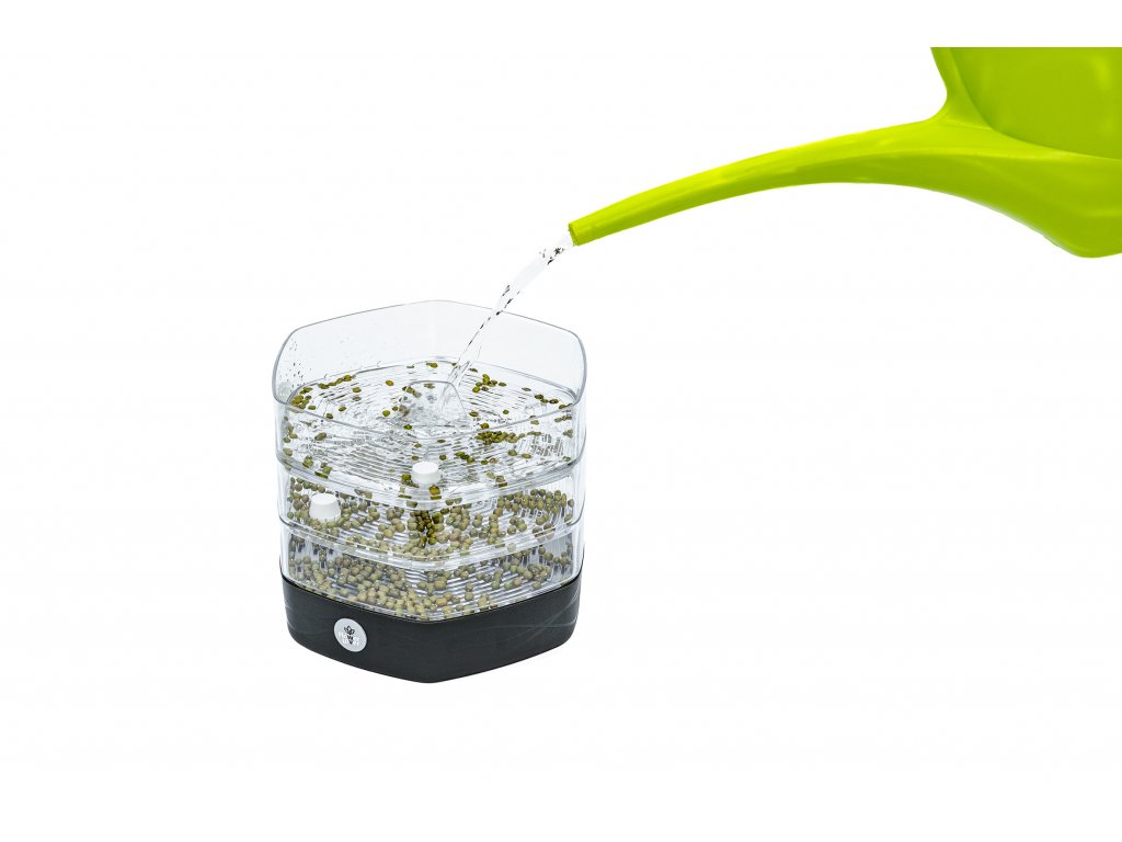 - Pro použití je nutné rozprostřít semínka na plochu misky a prolít je 2x denně vodou