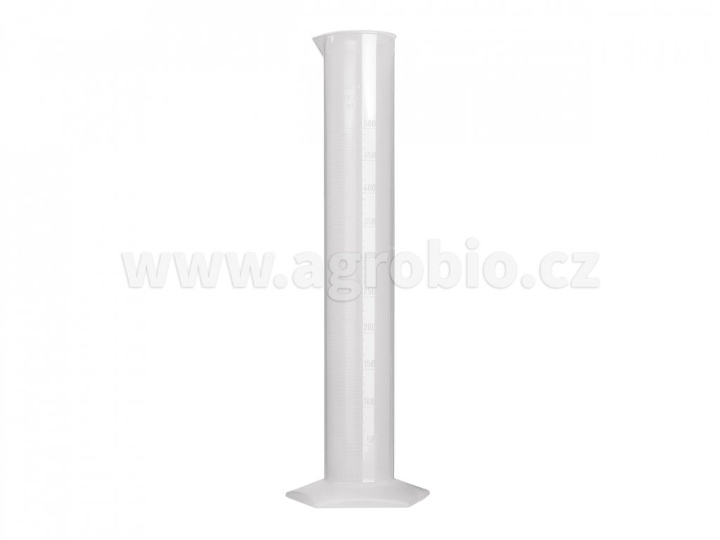 Odměrný válec vyrobený z polypropylenu s objemem 500ml je autoklávovatelný do 121°C.