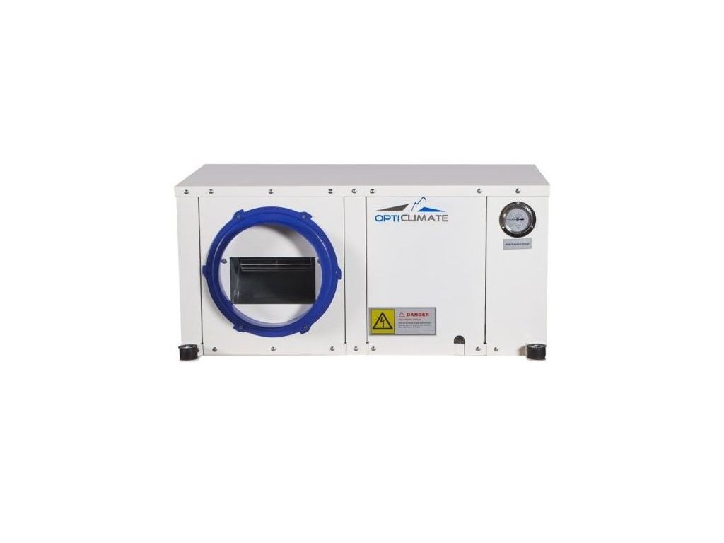 Klimatizační jednotka OptiClimate Pro3 3500 disponuje chladicím výkonem 3,5 kW, spotřebou vody 1-2 litry za minutu a dvěma 1500W topnými články.
