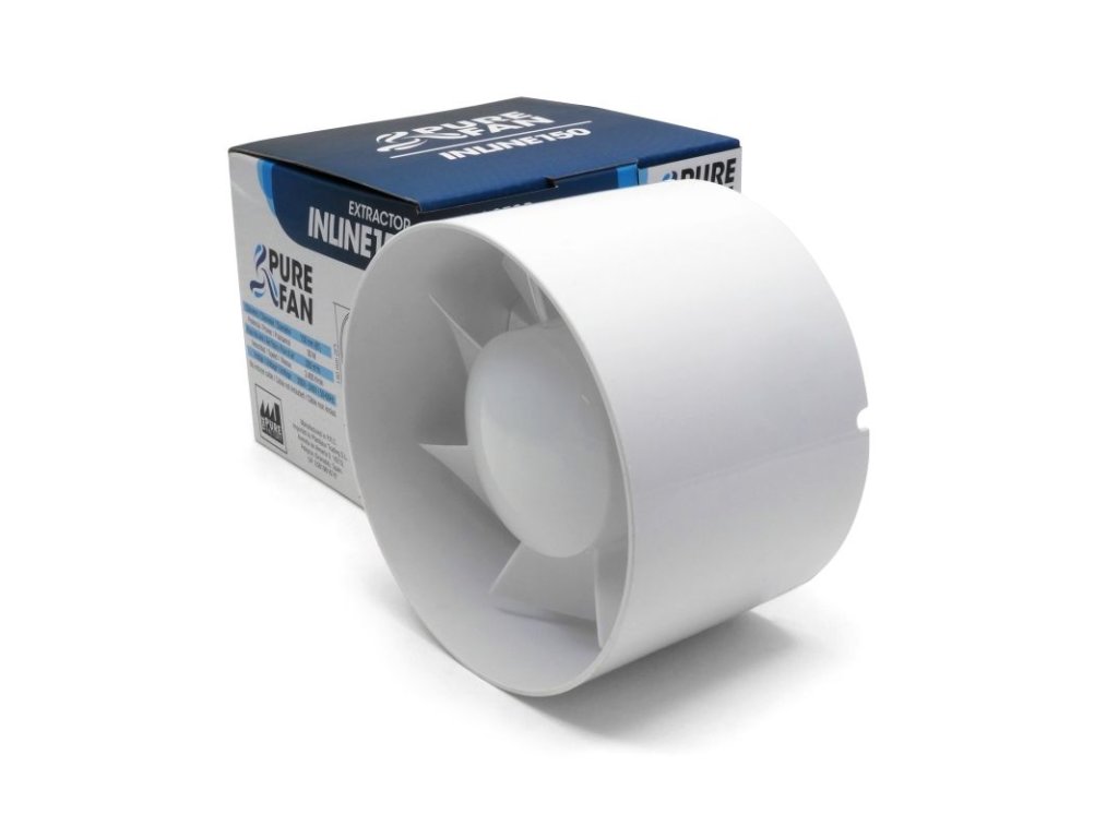 Plastový in-line axiální ventilátor PF VKO 150 je vhodný pro kratší ventilační potrubí s nízkou tlakovou ztrátou a je kompatibilní s ventilačním potrubím o průměru 150 mm.