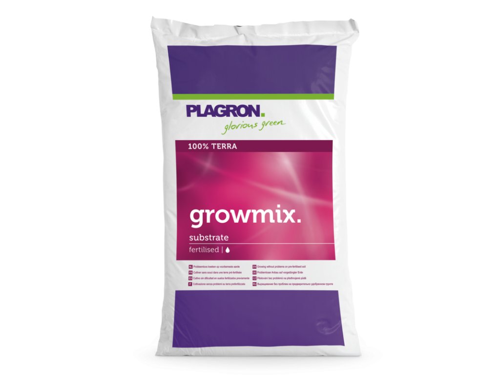 Plagron Growmix je směsí jemných, pečlivě vybraných typů rašeliny, rašelinových vláken a perlitu. Celá směs tak získává optimální lehkost a vzdušnost, kterou nenaleznete u jiných značek. Velké množství žížalího trusu zajišťuje substrátu vyšší zadržování vody a zároveň podporuje bujný a zdravý růst. Kombinace hnojiv přidaných do substrátu pokrývá veškeré nároky pro rostlinu po dobu prvních 3 týdnů. Pro nejlepší výsledky doporučuje výrobce zvolit Plagron Terra Grow a Terra Bloom ve spojení s jeho aditivy.- předhnojeno na první 3 týdny s vylepšeným složením živin