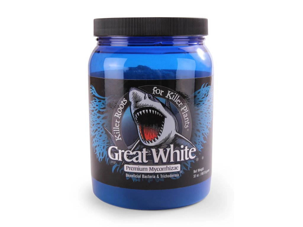 Great White Premium je koncentrovaný prášek obsahující až 16 druhů mykorhizních hub, 14 druhů prospěšných bakterií a 2 druhy trichodermy, který se používá k zalévání rostlin, klonování, přesazování, hydroponii a klíčení.