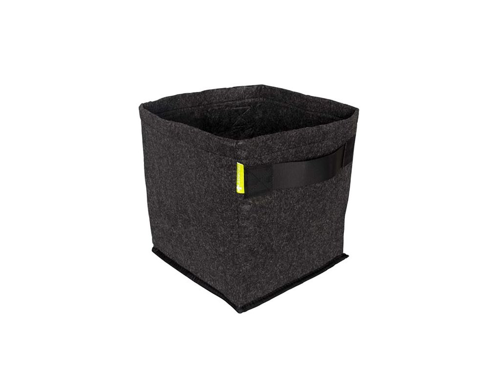 - Černý textilní květináč má objem 15 litrů