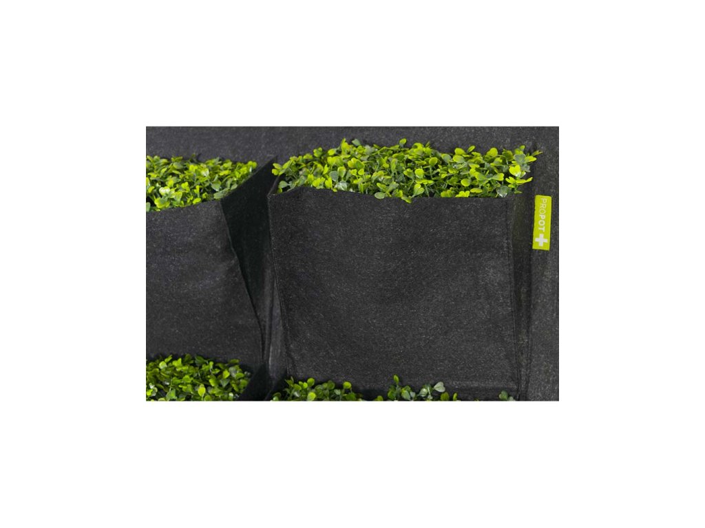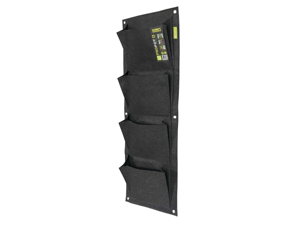 ProPot Wall 4 je textilní květináč s 4 kapsami pro nástěnné pěstování rostlin v indoor i outdoor podmínkách, ideální pro ty, kteří nemají dostatek místa nebo chtějí oživit stěny obrazem z rostlin.