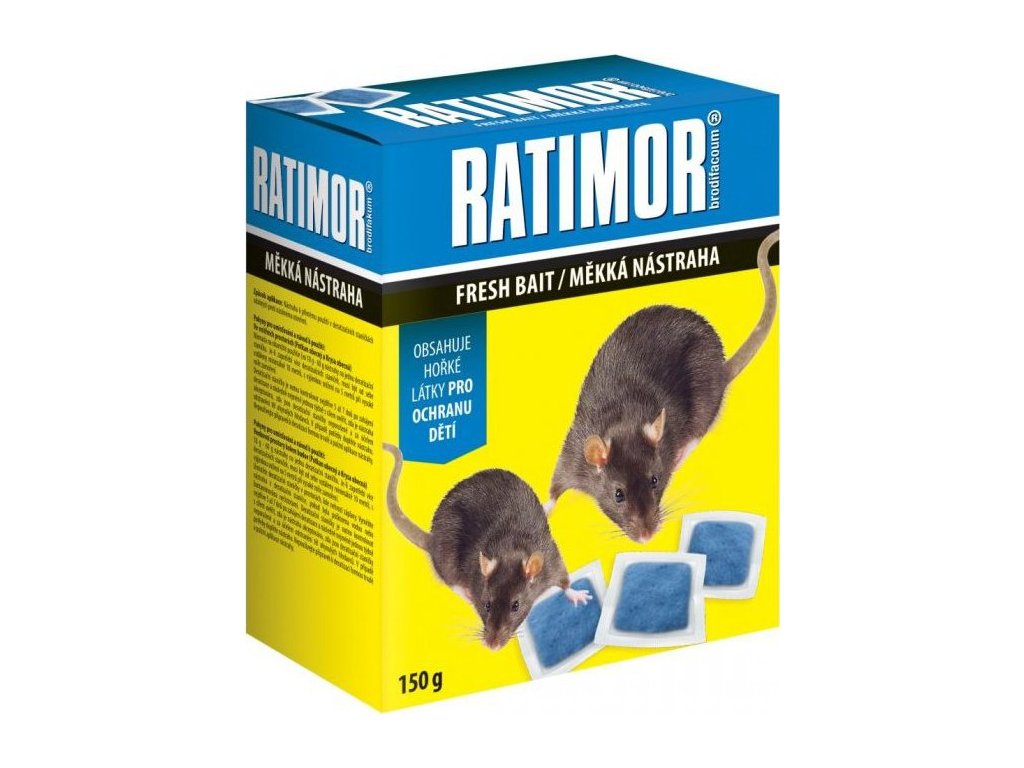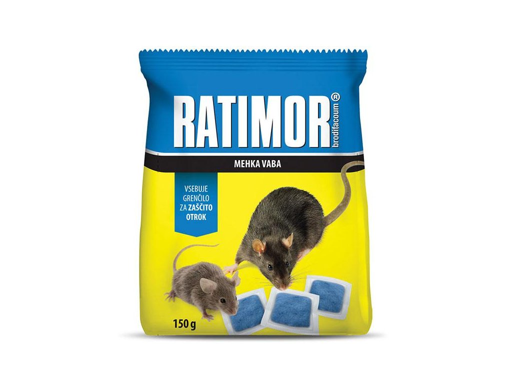 Ratimor je měkká nástraha pro hubení hlodavců s účinnou látkou brodifakum a je vhodná pro použití kolem domů, na stavbách, v chlévech a jiných místech s ohledem na zvýšenou opatrnost.