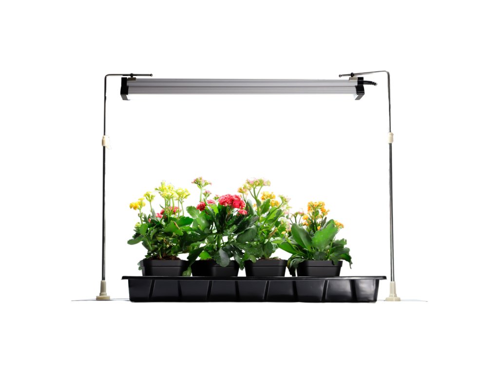 Stavebnicový kovový stojan pro zavěšení jednoho LED svítidla s nastavitelnou výškou od 40 do 70 centimetrů.