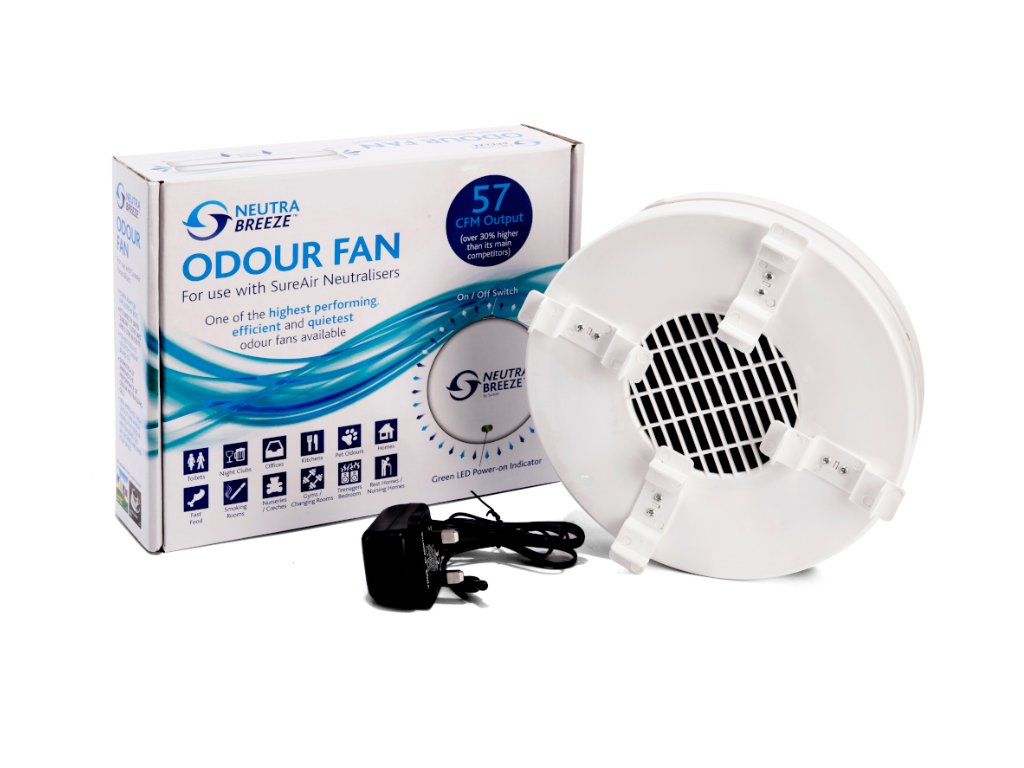 Ventilátor Sure Air Neutra Breeze rozptyluje esenciální látky z gelových neutralizérů všemi směry a maximálně účinným způsobem a je ideální pro odstranění pachů v různých prostředích.