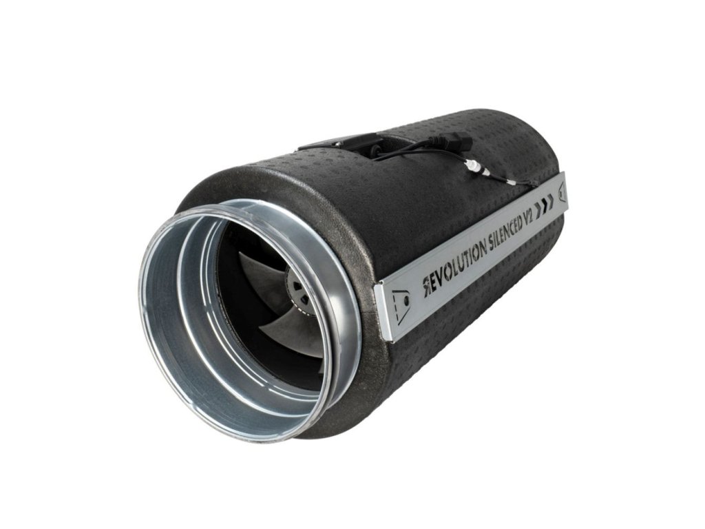 Revolution Silenced V2 je dokonalý ventilátor pohlcující zvuk s tichými EC motory a dvojitě vyváženými lopatkami. Výkonné, aerodynamicky optimalizované lopatky a vodicí lopatky vytvářejí rychlé vysokotlaké proudy vzduchu, které mohou být hlučné. Kryt ventilátoru Revolution Silenced V2 obsahuje pěnu snižující hluk, která neabsorbuje vlhkost ani prach a byla speciálně vyvinuta pro ventilační systémy.