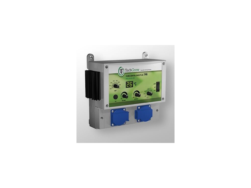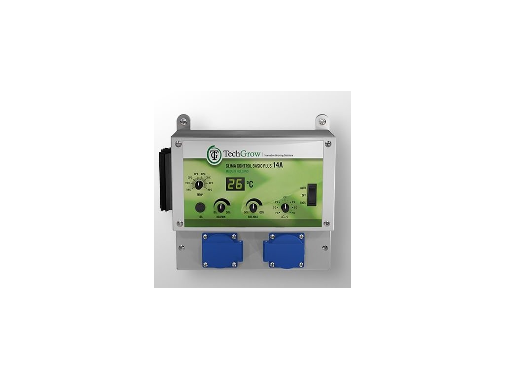 Regulátor TechGrow Clima Control Basic Plus umožňuje nastavit teplotu i rychlost ventilátorů s LCD displejem a 4,5 metrů dlouhou teplotní sondou a je dodáván s montážní sadou a náhradní pojistkou.